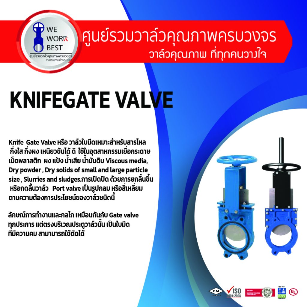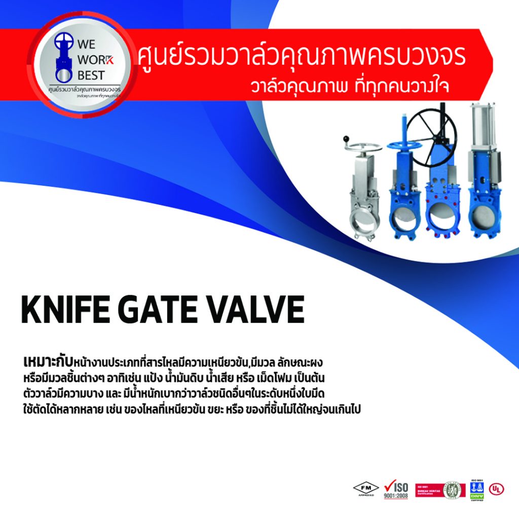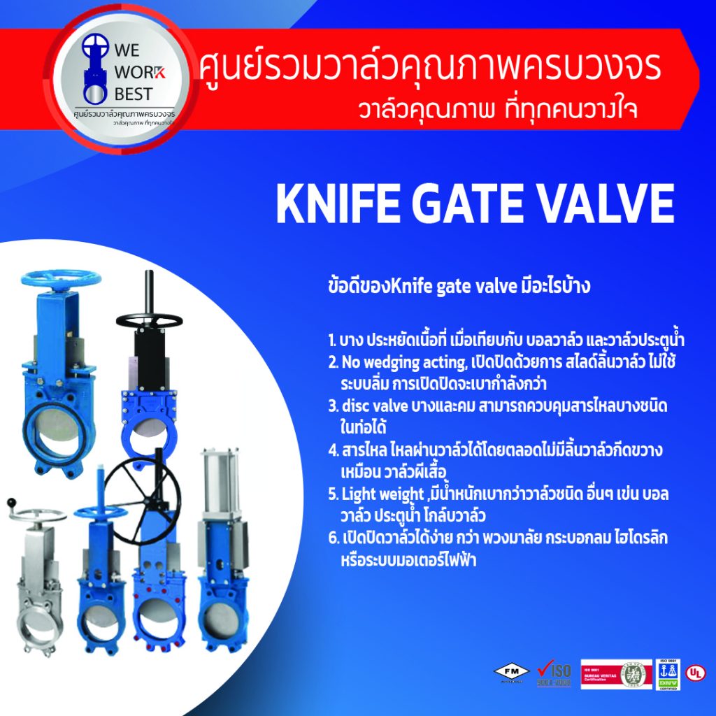 - No wedging acting, เปิดปิดด้วยการ สไลด์ลิ้นวาล์ว ไม่ใช้ ระบบลิ่ม การเปิดปิดจะเบากำลังกว่า