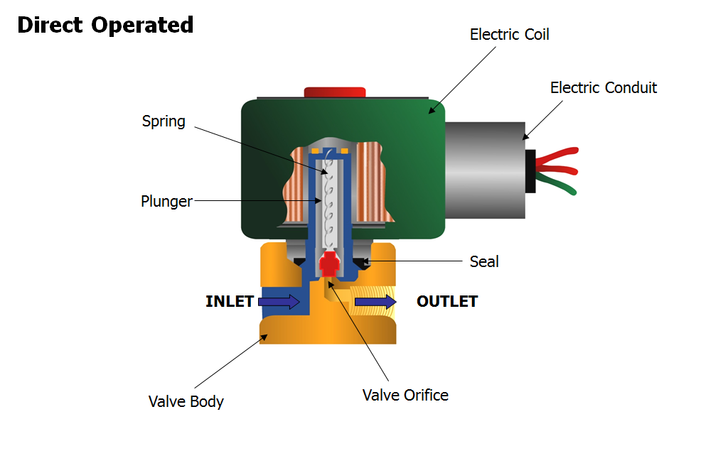 SOLENOID – (Electro-magnetic) coil จะเป็นตัวทำหน้าที่สร้างสนามแม่เหล็กและเหนี่ยวนำให้ plunger เคลื่อนที่ขึ้นลง