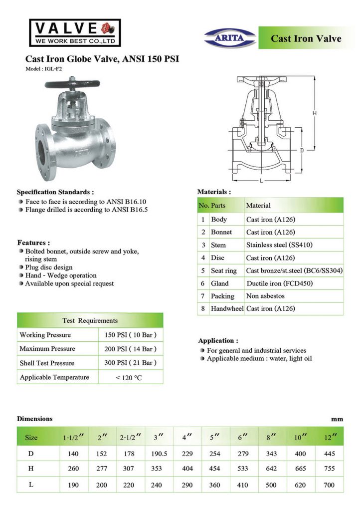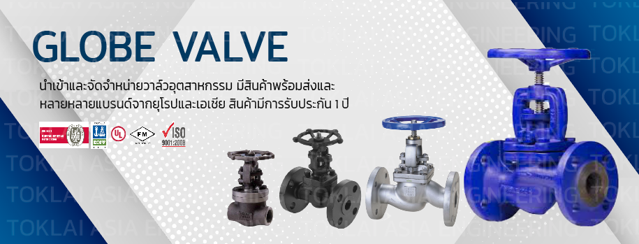 GLOBE VALVE (โกลบวาล์ว) เป็นวาล์วที่ถูกออกแบบมา เพื่อใช้ในการควบคุมปริมาณการไหลของของเหลว มีลักษณะการทำงาน คือ เวลาเปิดหรือปิดวาล์ว ลิ้นวาล์วจะเลื่อนขึ้นหรือลงในทิศทางที่เข้าหาบ่าวาล์ว ทำให้สามารถควบคุมปริมาณการไหลได้ เนื่องจากของเหลวที่เหลื่อนที่ผ่านตัววาล์ว จะมีการหักเลี้ยวหลายครั้ง ทำให้ความดันของของไหลลดลง ถึงแม้จะเปิดเต็มที่ก็ตาม