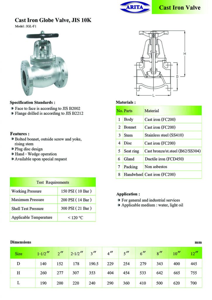GLOBE VALVE หรือ โกลบวาล์ว สามารถใช้เป็นวาล์วเปิดปิดและปรับอัตราการไหลได้ ทุกตัวออกแบบมาให้ปรับอัตราการไหล โดยการควบคุมที่ช่องว่างระหว่างดิสท์ (Disc) และ ซีท (Seat) ระยะแกนสั้นกว่าวาล์วประตู มี3แบบ คือรูปตัวที ตัววายและแบบมุมทําให้สามารถเลือกการติดตั้งได้ เจียรหน้าแท่น (Seat) ได้ง่าย ถ้าใบไม่ ติดกับแกนสามารถใช้เป็นวาล์วเปิดปิดและกันย้อนได้ แต่มีความดันตกมากแม้เมื่อเปิดสุด ต้องใช้แรงมากที่จะ ปิดวาล์ว
