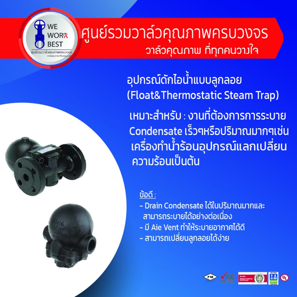 คอนเดนเซทเข้าสู่แทร็ปทำให้ลูกบอลลอยขึ้นโดยลูกบอลจะต่อเข้ากับก้านวาล์วเพื่อทำหน้าที่ปิดเปิด นอกจากนี้ส่วนใหญ่แทร็ปจะติดตั้ง Air vent ไว้ภายในด้วยเพื่อป้องกันปัญหา Air lock ทำให้คอนเดนเซทไม่สามารถไหลเข้าสู่แทร็ปได้ ถ้าวาล์วด้านล่างอุดตันตัว Air vent ก็สามารถทำหน้าที่เป็นแทร็ปได้เช่นเดียวกัน นอกจากที่กล่าวมาในบางรุ่นจะมี Steam lock release (SLR) เข้ามาติดตั้งแทน Air vent เพื่อป้องกันการเกิด steam lock และ Air lock คือเมือไอน้ำหรืออากาศเข้าสู่แทร็ปน้ำจะไม่สามารถไหลเข้ามาได้ ในบางครั้งอาจติดตั้งวาล์ว by pass ไว้แทน SLR ก็ได้โดยวาล์วจะเปิดเล็กน้อยเพื่อระบายไอน้ำหรืออากาศที่ค้างอยู่ภายใน