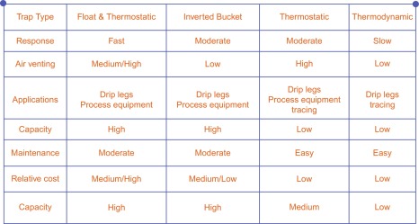 กับดักไอน้ำจะถูกแบ่งได้ 3 ประเภทหลักๆตามการใช้งาน ซึ่งมีดังนี้