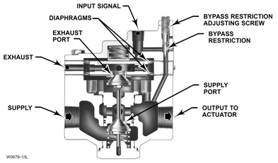 8. Volume Boosters ถูกใช้เพื่อเร่งการเพิ่มปริมาตรอากาศจากแหล่งกำเนิดภายนอกระบบเข้าสู่ Actuator ทั้งนี้อาจเป็นเพราะ Positioner หรือตัวควบคุม (Controller) อาจส่งสัญญาณให้อากาศผ่านเข้ามาใน Actuator ไม่เพียงพอต่อการเคลื่อนที่ก้าน Actuator ให้ได้ภายในระยะเวลาที่ต้องการ เช่น ตัว Pneumatic Actuator ตัวใหญ่ จึงต้องเร่งการส่งความดันอากาศให้เร็วและมากขึ้น เพื่อให้กระบวนการหรือระบบฯนั้นๆทำงานได้ผลตามที่ออกแบบไว้