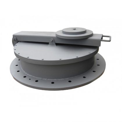 แบบที่ 2: Emergency hatch หรือที่เรียกว่า ฝาเปิดฉุกเฉิน อุปกรณ์นี้ถือว่าเป็นด่านป้องกันสุดท้ายแล้วครับ ในกรณีที่แรงดันภายในถังพุ่งสูงขึ้นจนเกิดกว่าค่าที่ตั้งไว้และ Relief valve อื่นๆที่ติดตั้งไม่สามารถระบายแรงดันได้ทัน อุปกรณ์ Emergency hatch หรือ Emergency vent นี้ก็จะเปิดขึ้นมา โดยเราสามารถตั้งค่าแรงดันที่ต้องการให้เปิดได้โดยใส่ตุ้มน้ำหนักถ่วงไว้ด้านบนครับ